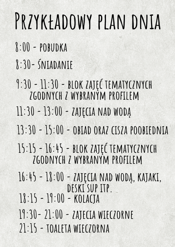 Nasza baza to nowoczesny ośrodek nad jeziorem, który zapewnia komfortowe warunki zakwaterowania i pyszne, domowe jedzenie. Nad wszystkim czuwa profesjonalna i doświadczona kadra, która sprawia, że każdy dzień na obozie to niezapomniana przygoda! Dołącz do nas i przeżyj najlepsze wakacje w życiu!